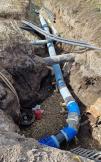 Die Baumaßnahmen zur Inbetriebnahme des neuen Rohwasserbehälters finden zum Wochenbeginn (27./28.03.2023) einen Abschluss. Die Tiefbauarbeiten an den Bestandsleitungen aus den 1960er-Jahren bargen einige Überraschungen und haben zu einer Verzögerung von ca. 1 Woche in der Bauzeit geführt.